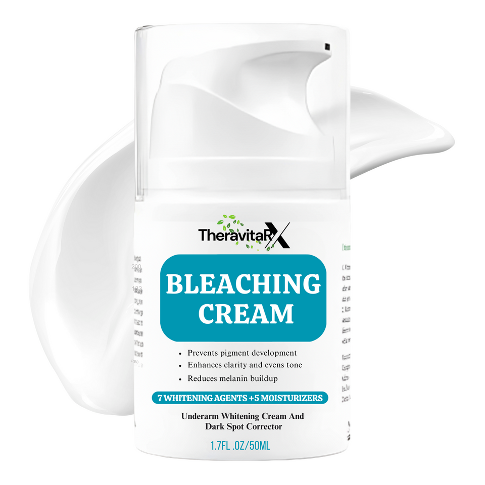 TheravitaRX Bleaching Cream brightens dark underarms, intimate areas, and spots while reducing melanin and improving skin tone for a smoother, radiant look. Perfect for daily use.